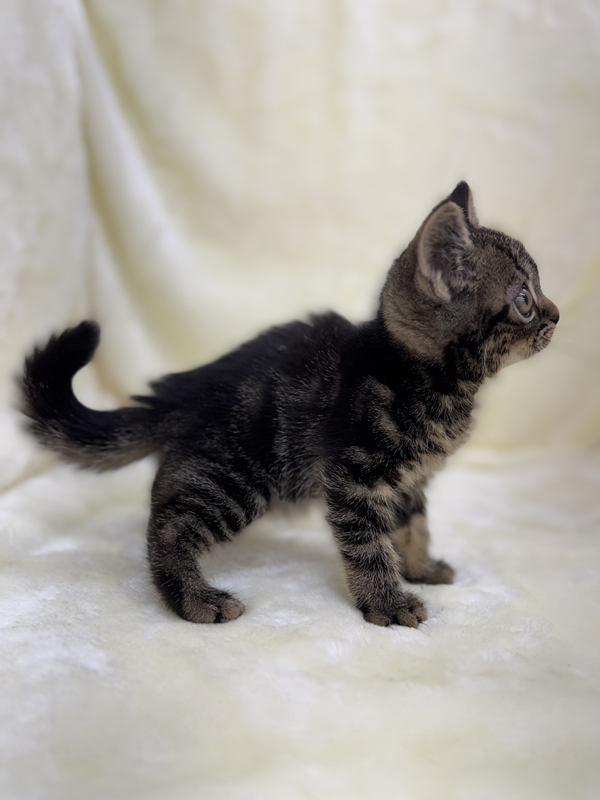 タビー柄の被毛はコントラストが美しく、どの角度から見ても表情豊か🌟
