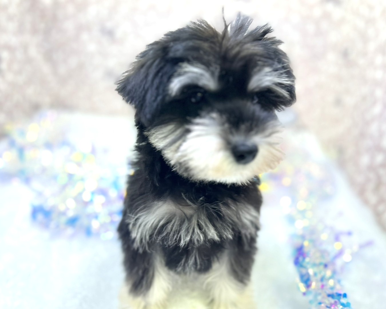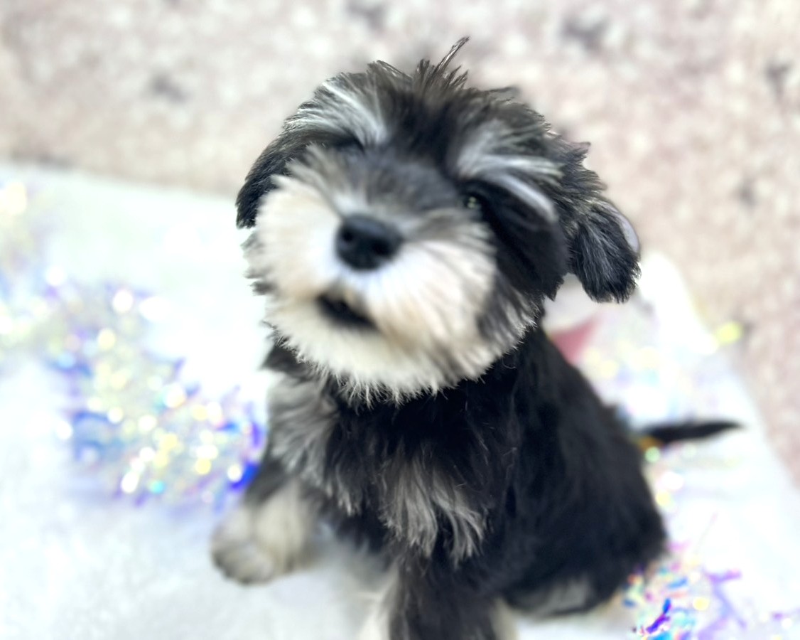 ふんわりとしたブラック&シルバーの被毛と、シュナらしい優しい眉がとても印象的✨