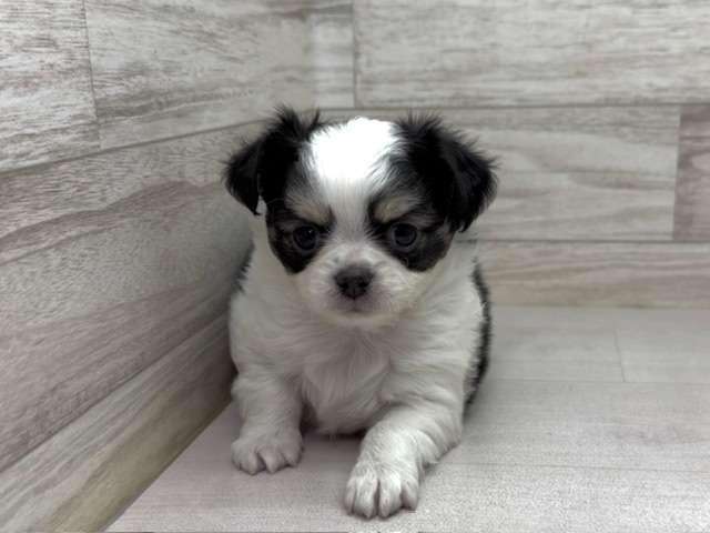 愛らしい小さなボディに、印象的な ホワイト&ブラックタン の毛色をまとった チワワ ♂。このカラーは、白を基調とした被毛にブラックとタンのアクセントが入った、目を引く美しいコントラストが魅力です。チワワはその小ささゆえに抱き心地が抜群で、どんな空間にもすっと馴染む存在感を持っています。立ち耳とまんまるの大きな瞳は表情豊かで、見ているだけで自然と笑顔がこぼれます。長い被毛はフワッと柔らかく抱きしめたくなる手触りで、四季を通じて変化する毛並みの美しさも楽しめます。遊び好きな瞬間やお昼寝の穏やかなひととき、そのすべてが日常を特別にしてくれることでしょう。小さな体に秘めた存在感と、きらめくカラーリングが際立つこの子と、これからの毎日をぜひ想像してみてください。