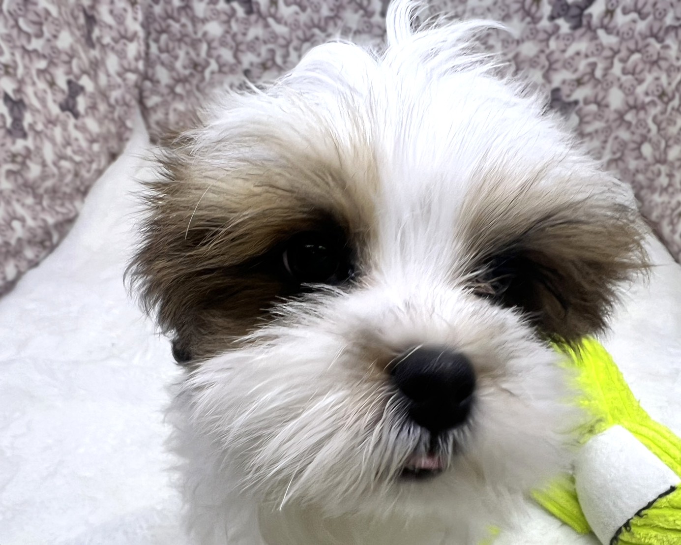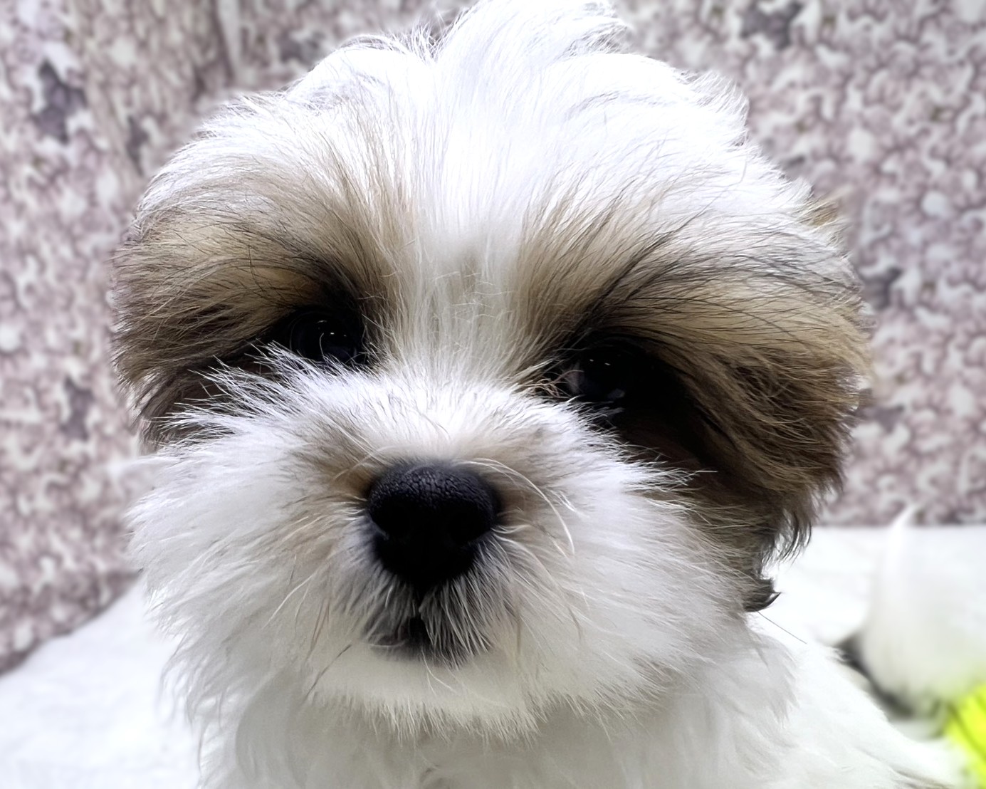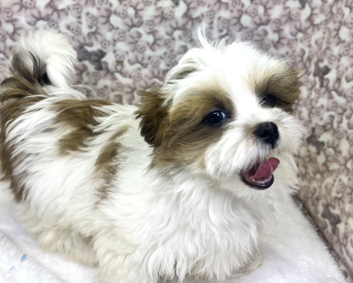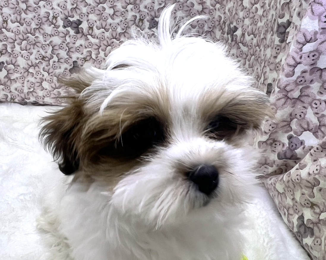 ゴールド&ホワイトの優しいカラーに、シーズーらしい愛嬌とマルチーズの上品さを兼ね備えた、思わず抱きしめたくなる可愛さ💕
