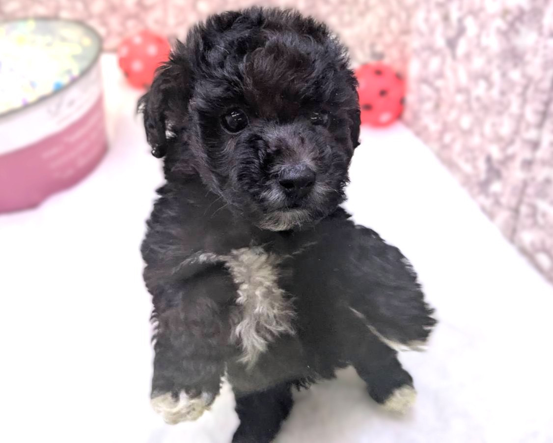 くりくりの大きな瞳と、ふんわりカールした被毛が魅力のブラック&ホワイトくん。胸元とあご下のホワイトがアクセントになり、ぬいぐるみのような可愛らしさです💗前足をちょこんと上げる仕草も愛嬌たっぷり🐾人懐こく、ご家族に寄り添ってくれるタイプなので初めての方にもおすすめです。