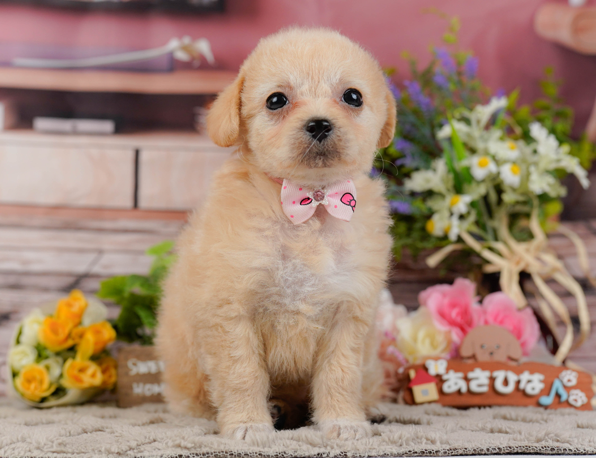 MIX♂(クリーム)父Tプードル(アプリコット2kg)母マルチーズ(ホワイト2.5kg)