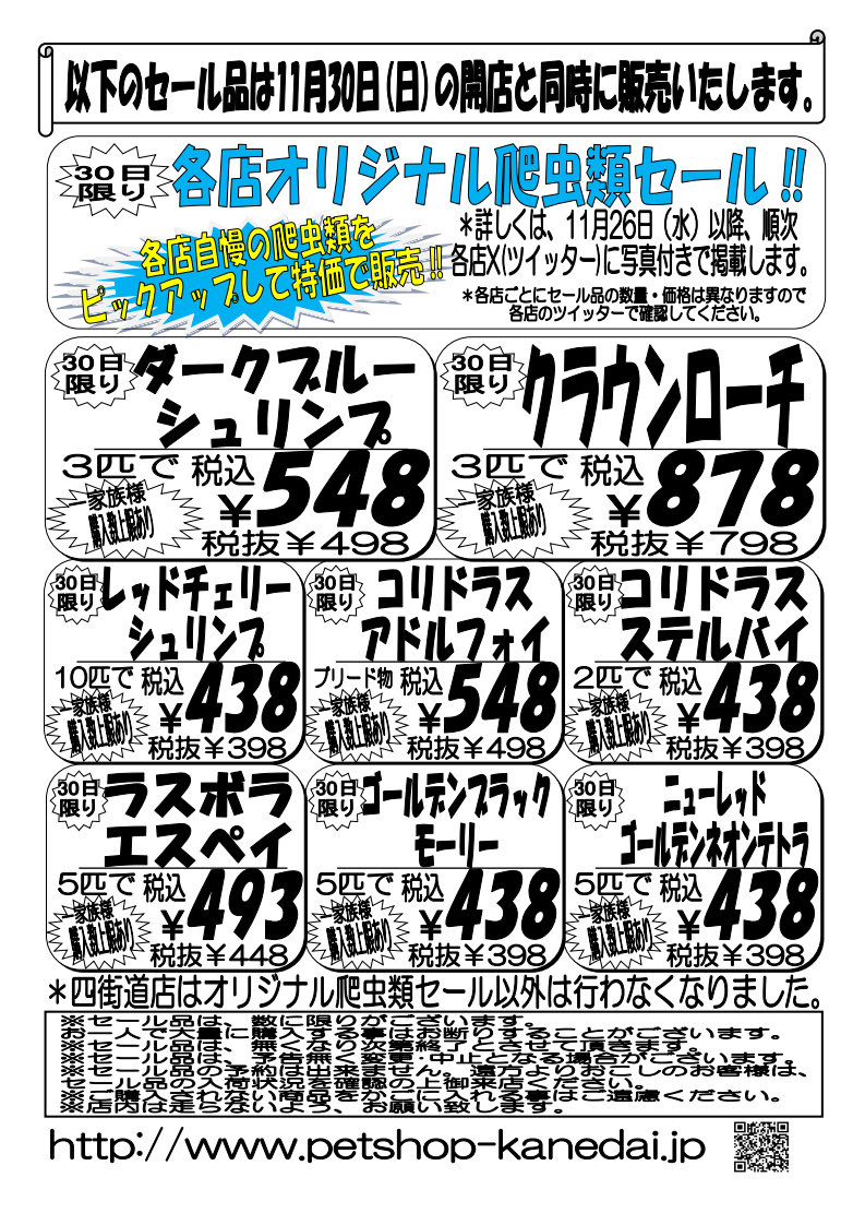 11月30日(日)各店オリジナル爬虫類セール!
