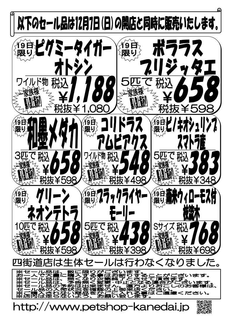 *四街道店はオリジナル爬虫類セール以外は行わなくなりました。