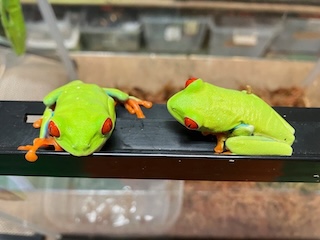 ぷっくりボディが可愛い【ヤエヤマアオガエル】と、カラフルで目を引く【アカメアマガエル】も入舎しています!