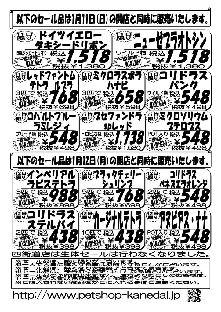 1月10日(土)〜12日(月)レジで画面提示(ツイッターフォロー)で使える!!割引クーポン券セール!