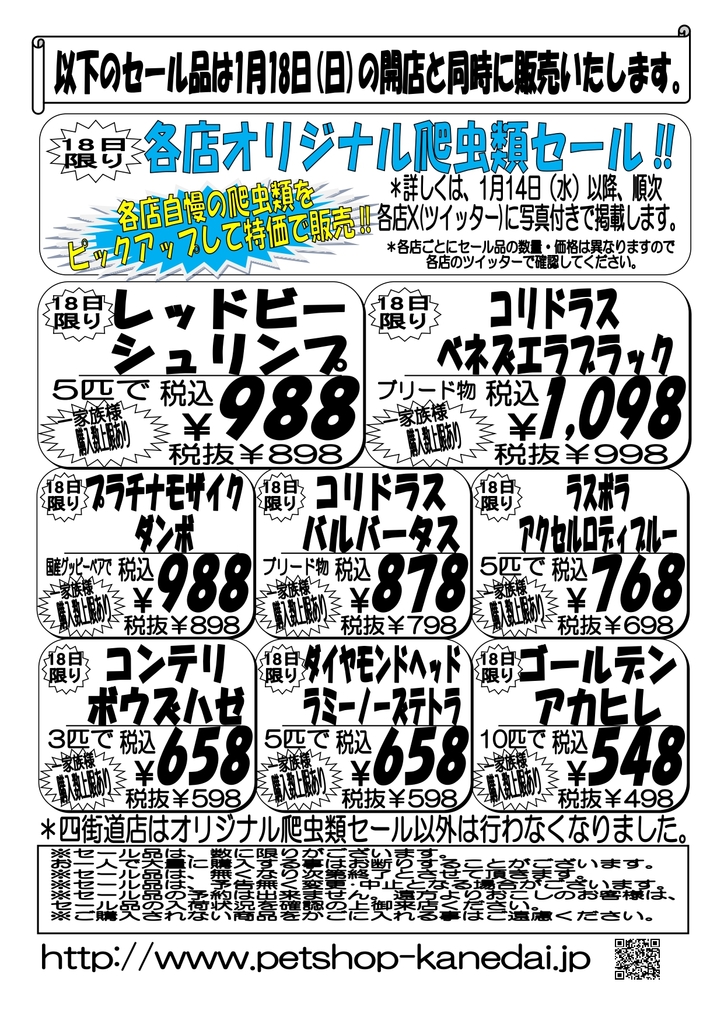 1月18日(日)各店オリジナル爬虫類セール!