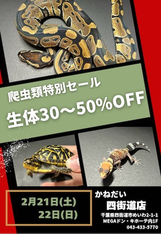 爬虫類をお迎えするなら今がチャンス✨ 人気のヘビ・トカゲ・カメなど生体が30〜50%OFFの特別セール開催!!