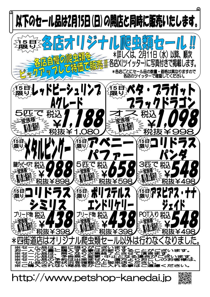 2月15日(日)各店オリジナル爬虫類セール!