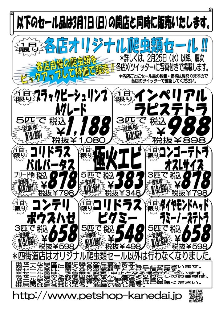 *四街道店はオリジナル爬虫類セール以外は行わなくなりました。