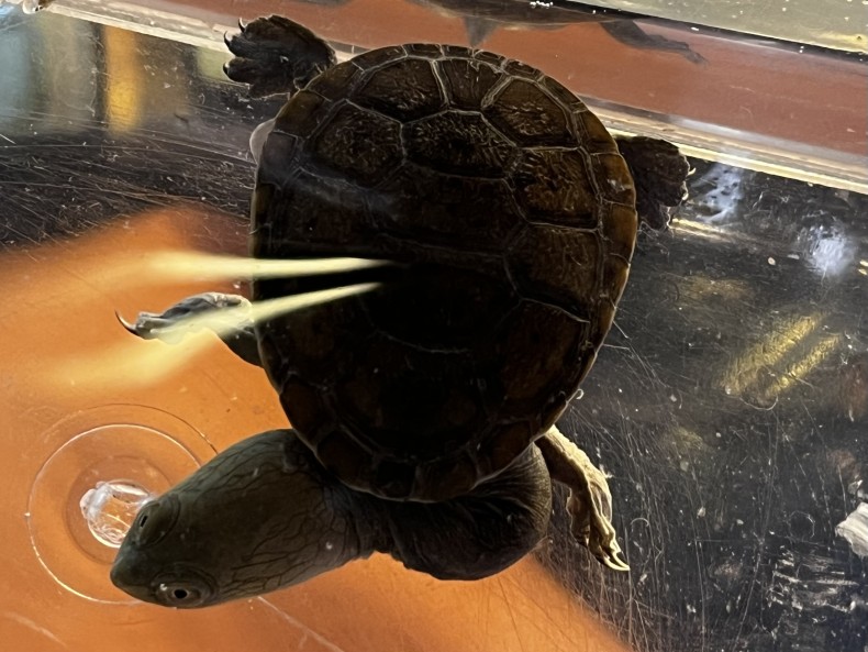 長い首と独特のフォルムが魅力のナガクビガメです。