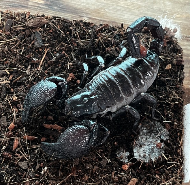 堂々とした体躯と重量感のあるハサミが魅力の大型サソリ。