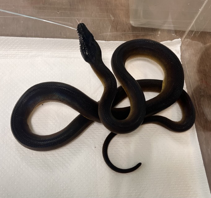 光沢のある鱗と独特の存在感が魅力のアルバーティスパイソン!