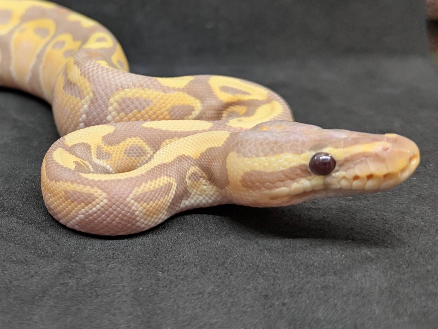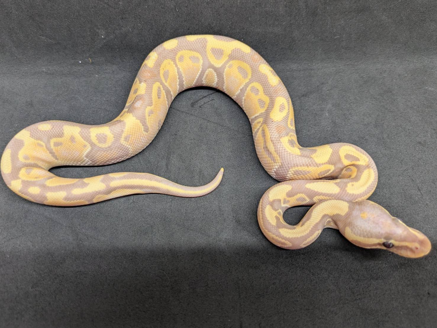 体色が黄色や薄紫で黒いスポットが特徴的なモルフです。現在、スポットはないですが成長とともに出てくると思われます。