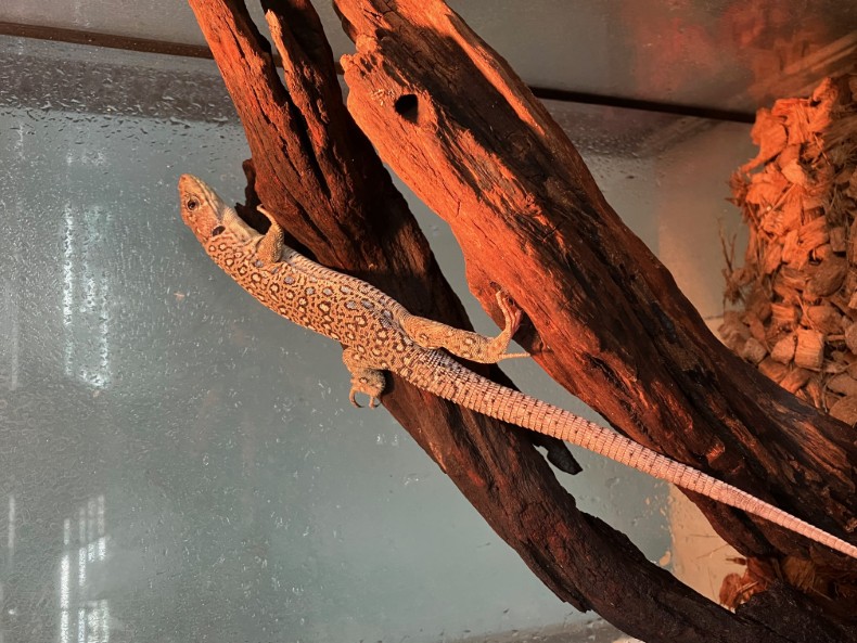 その名の通り宝石のように輝くブルーとグリーンが美しいホウセキカナヘビです。