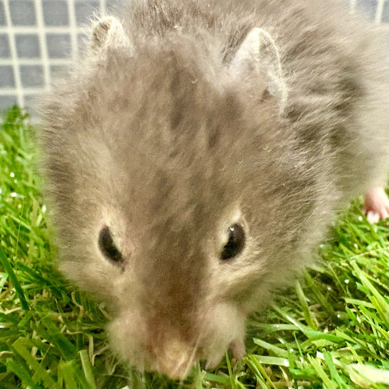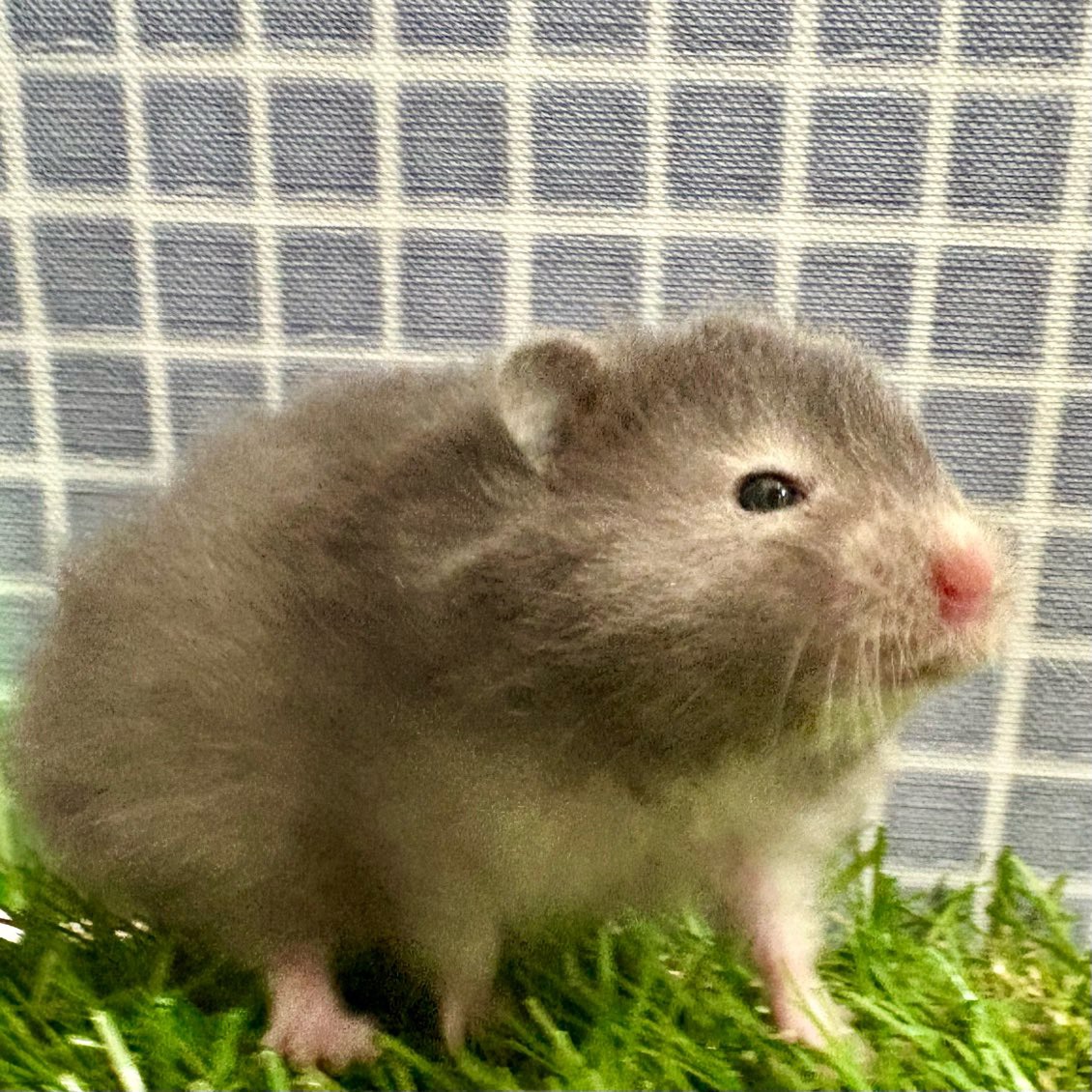 ふんわりやさしいグレーの毛並みが魅力的な、セーブルハムスターの女の子です🥺🌷