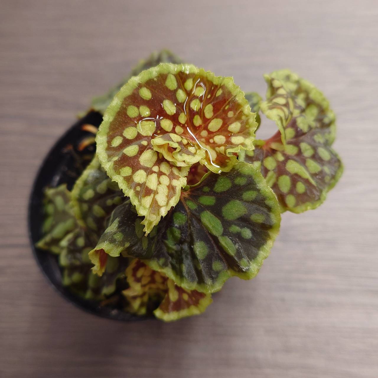 濃い葉色に浮かぶ明るいスポット模様が特徴。