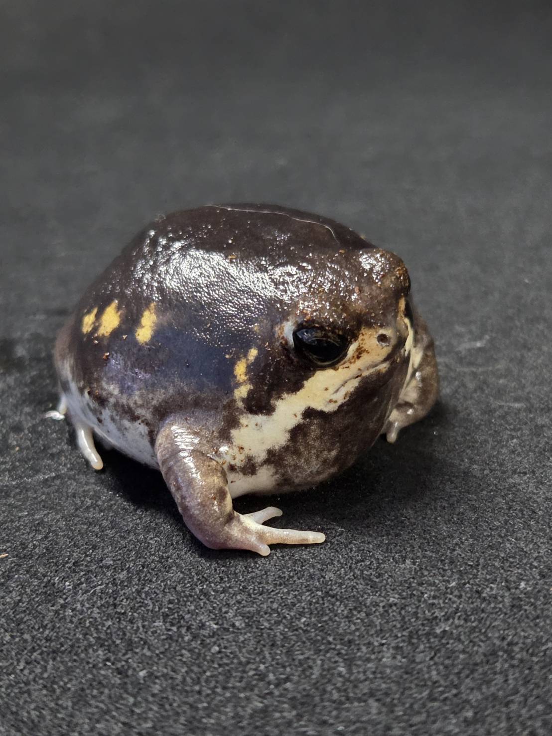 丸みのある体と短い手足、思わず見入ってしまう独特のフォルムが魅力のパワーズフクラガエル。