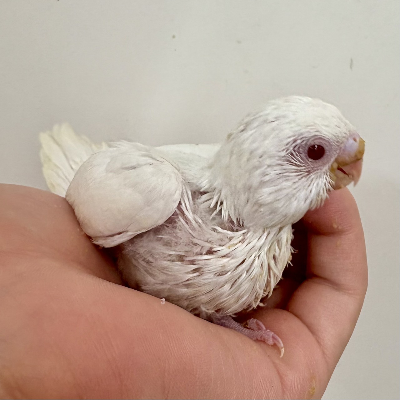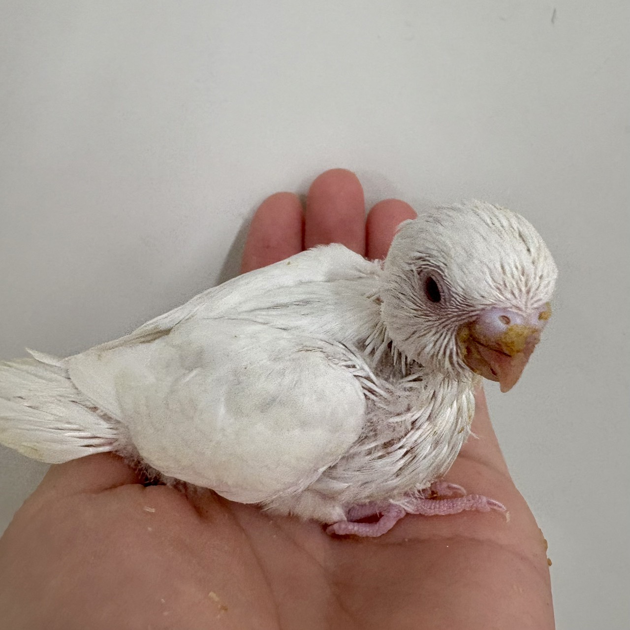神秘的で上品な雰囲気をまとう、アルビノのセキセイインコです。