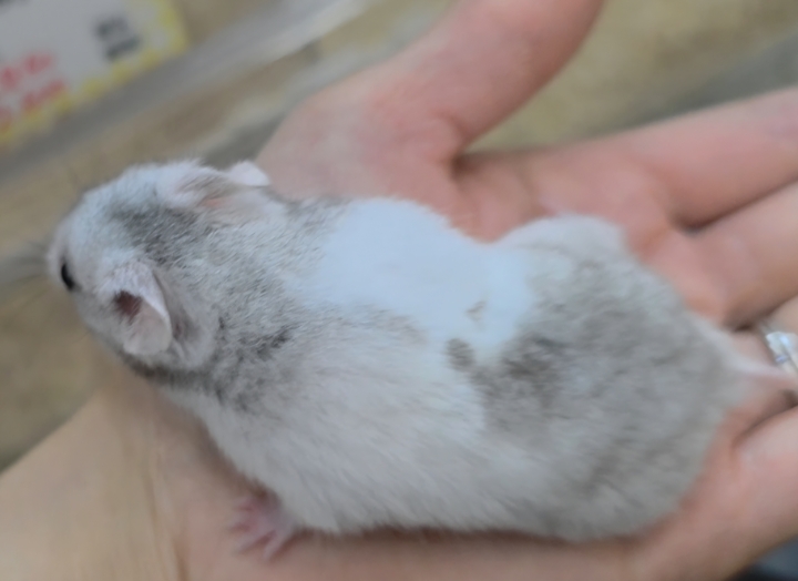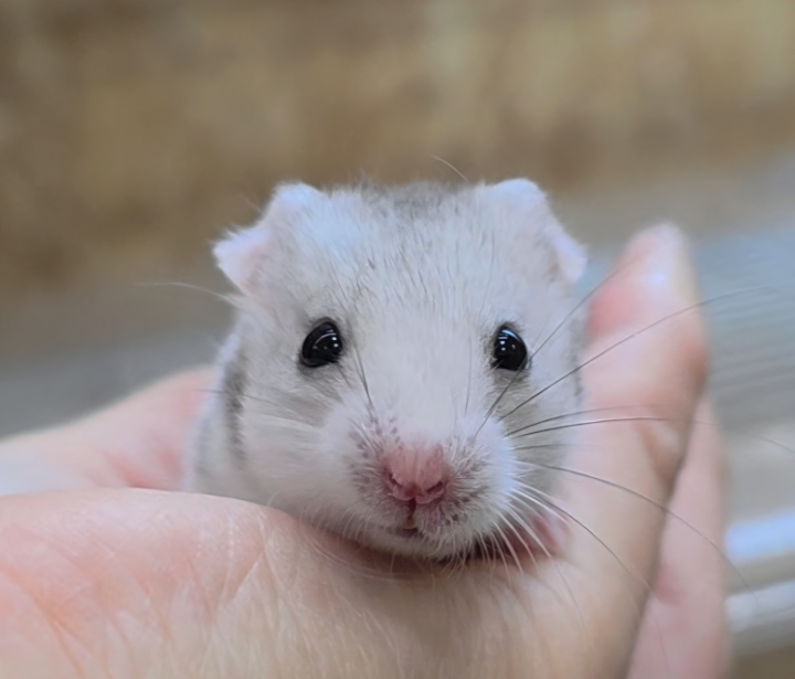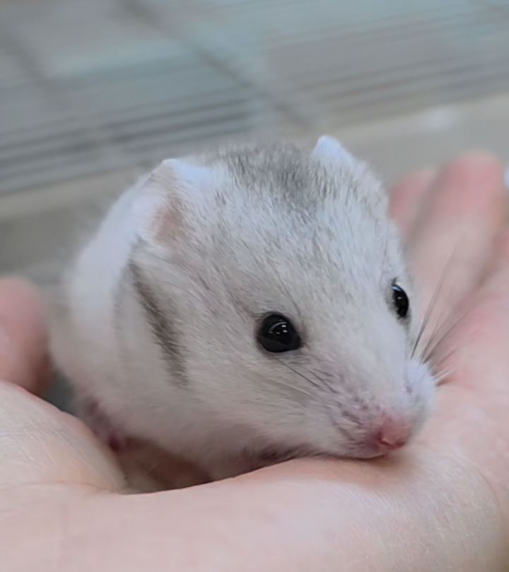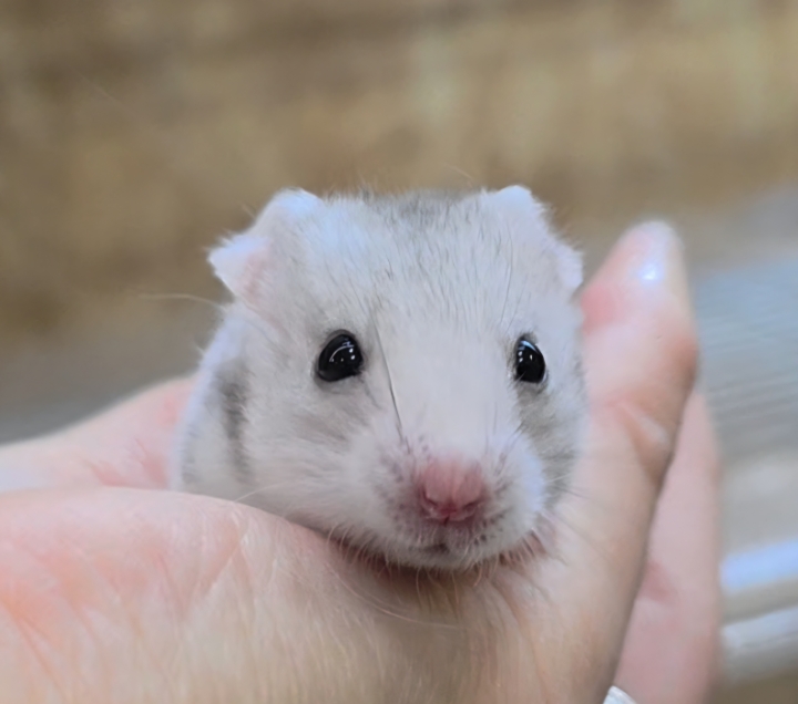 ゴールデンハムスターの中でも、落ち着いた印象が魅力のシルバー系カラーの子です💖