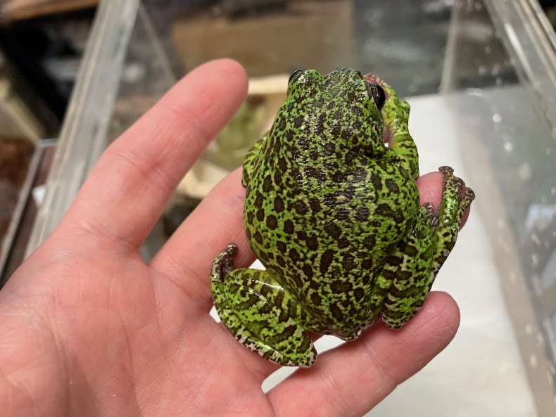 現在はしっかりとしたサイズ感で、体調も安定しています。環境に慣れると行動も観察しやすく、樹上性カエルの中でも扱いやすい種類として知られています。