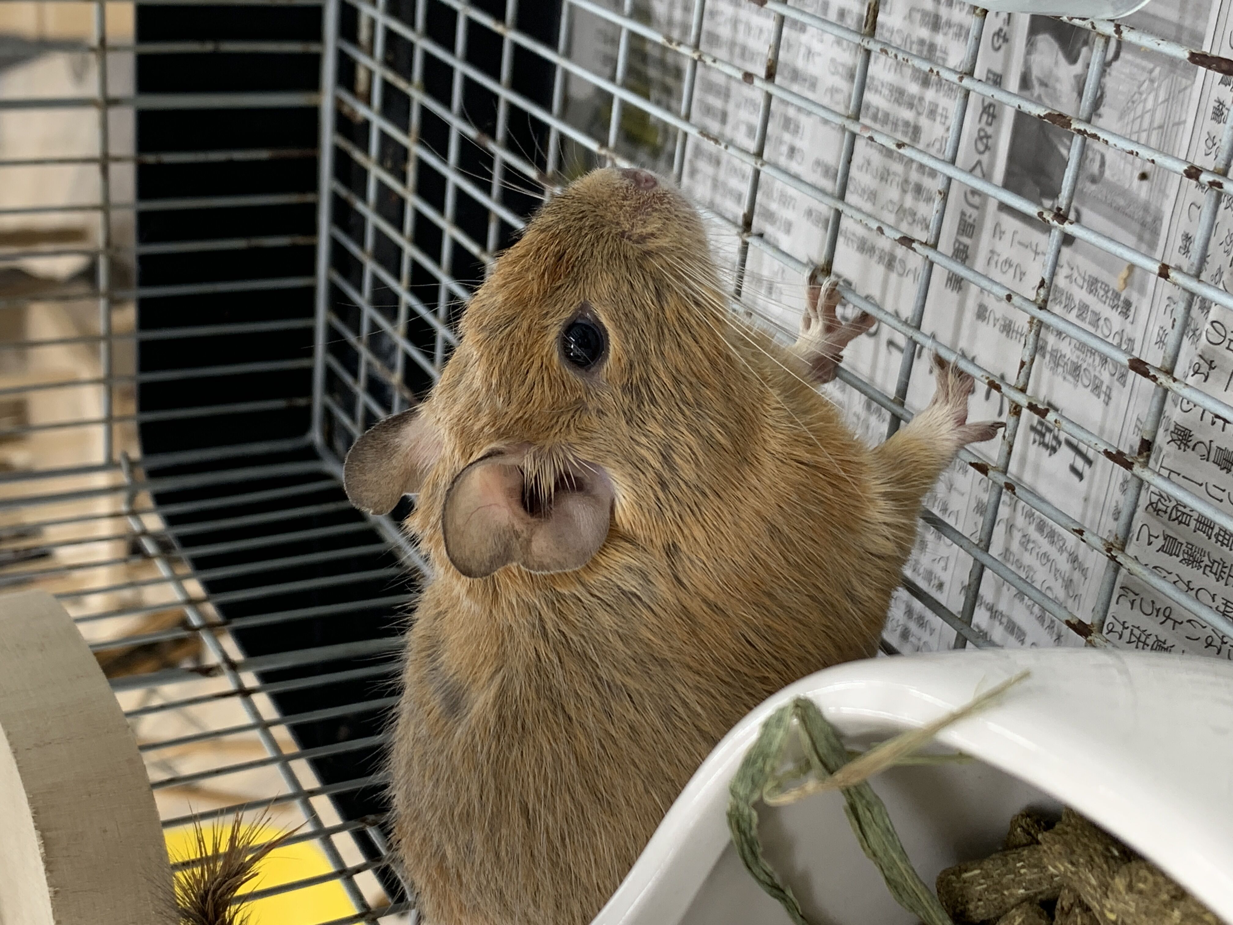 やさしいサンドカラーに、くりくりの瞳✨ 好奇心いっぱいのデグーくん