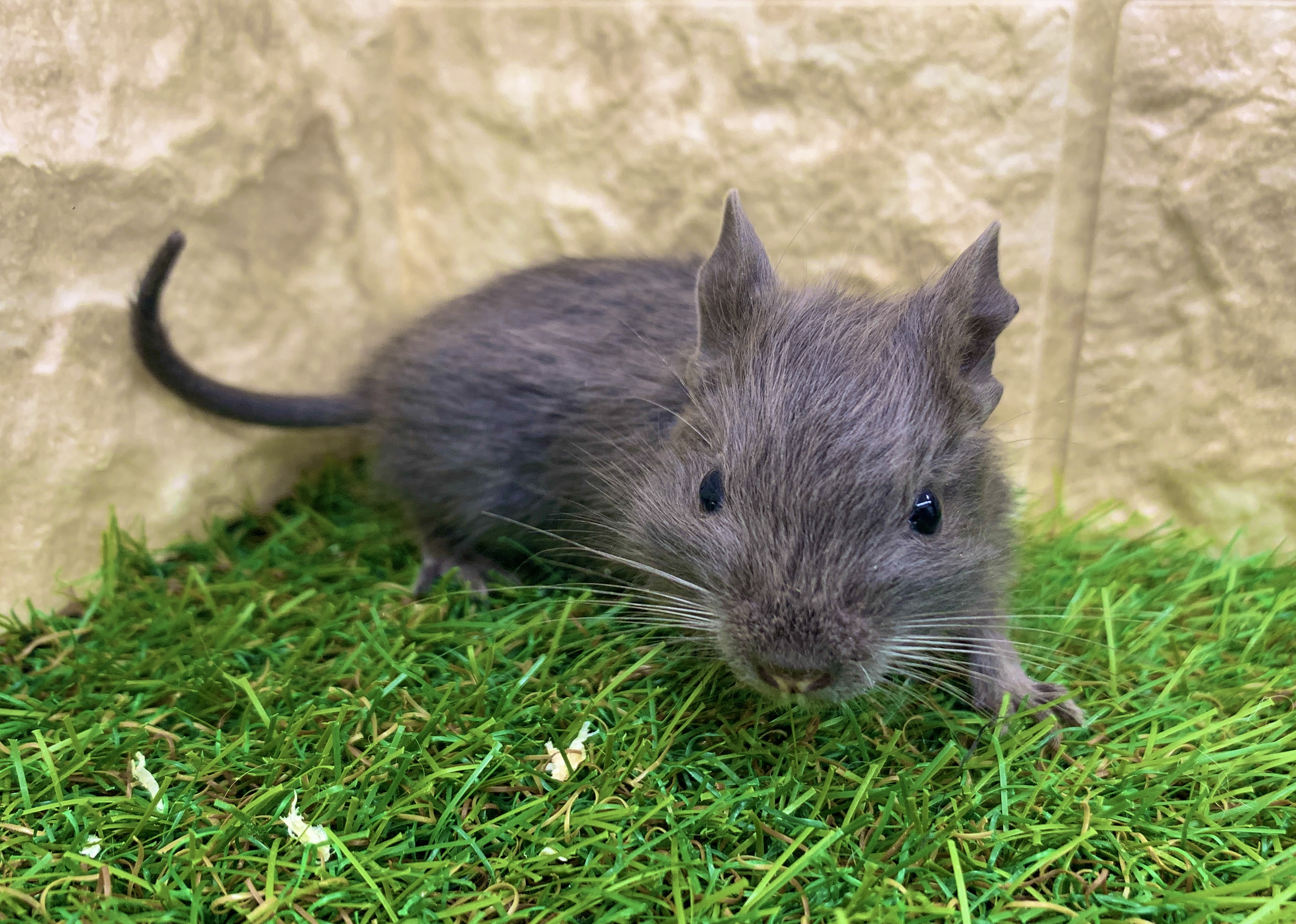 やさしいサンドカラーに、くりくりの瞳✨ 好奇心いっぱいのデグーくん