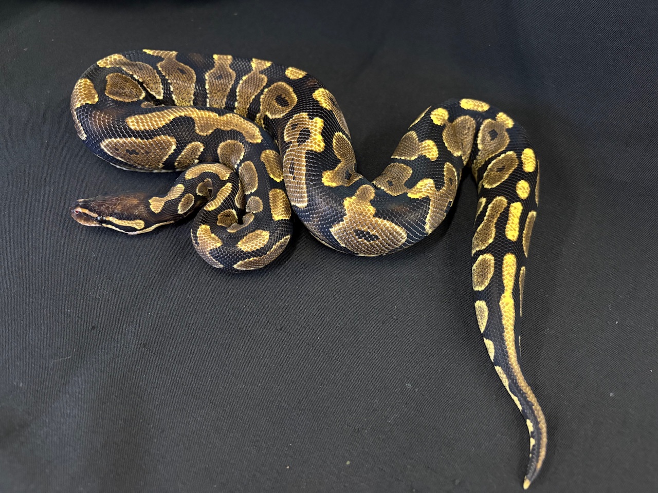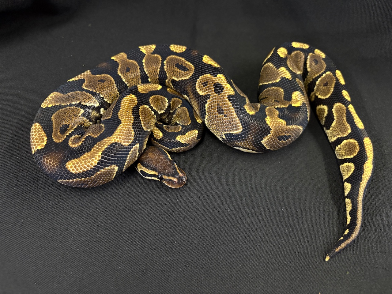 性格はボールパイソンらしく穏やかで、落ち着いた印象。