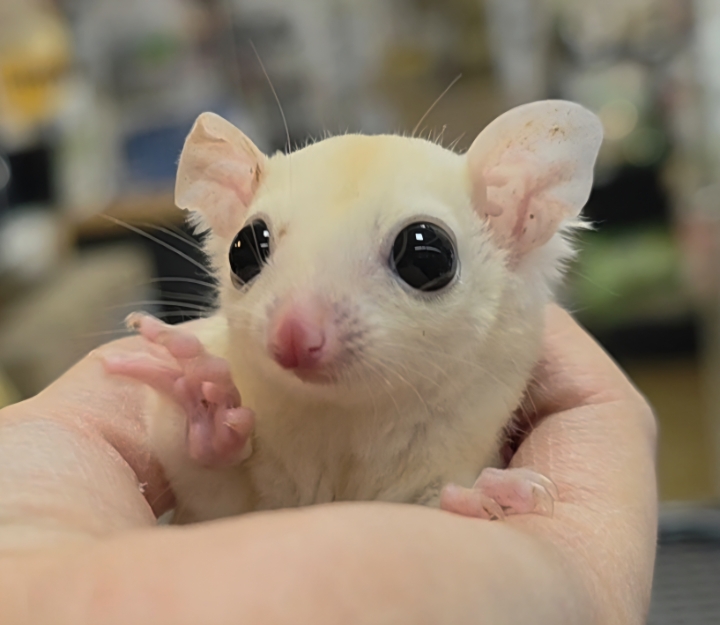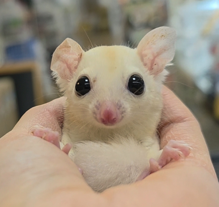 透明感のある白い被毛が魅力の、フクロモモンガ(リューシスティック)✨