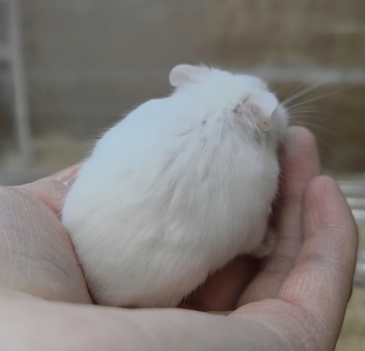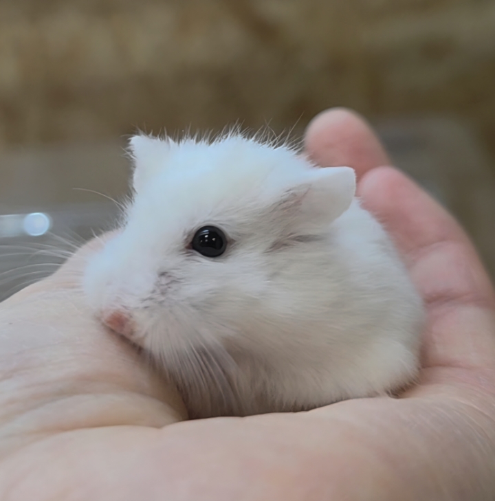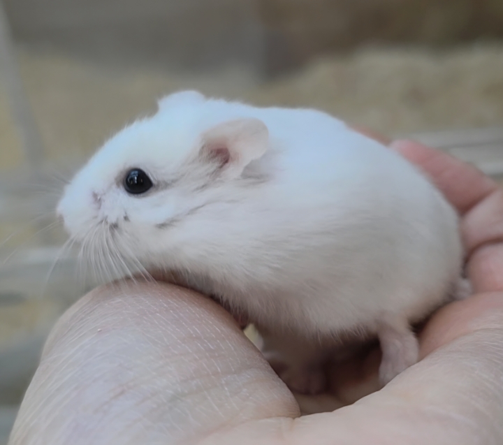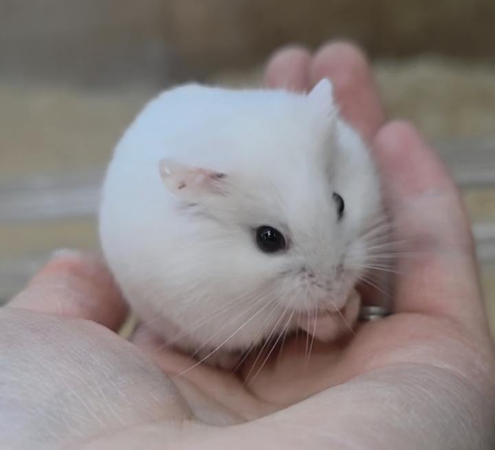 雪みたいにやさしいホワイトカラーが目を惹く、ロボロフスキーハムスターさん✨