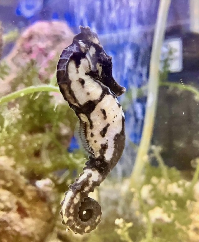 人工繁殖個体のクロウミウマです。野生個体に比べ環境への順応性が高く、落ち着いた個体が多いのが特徴です。
