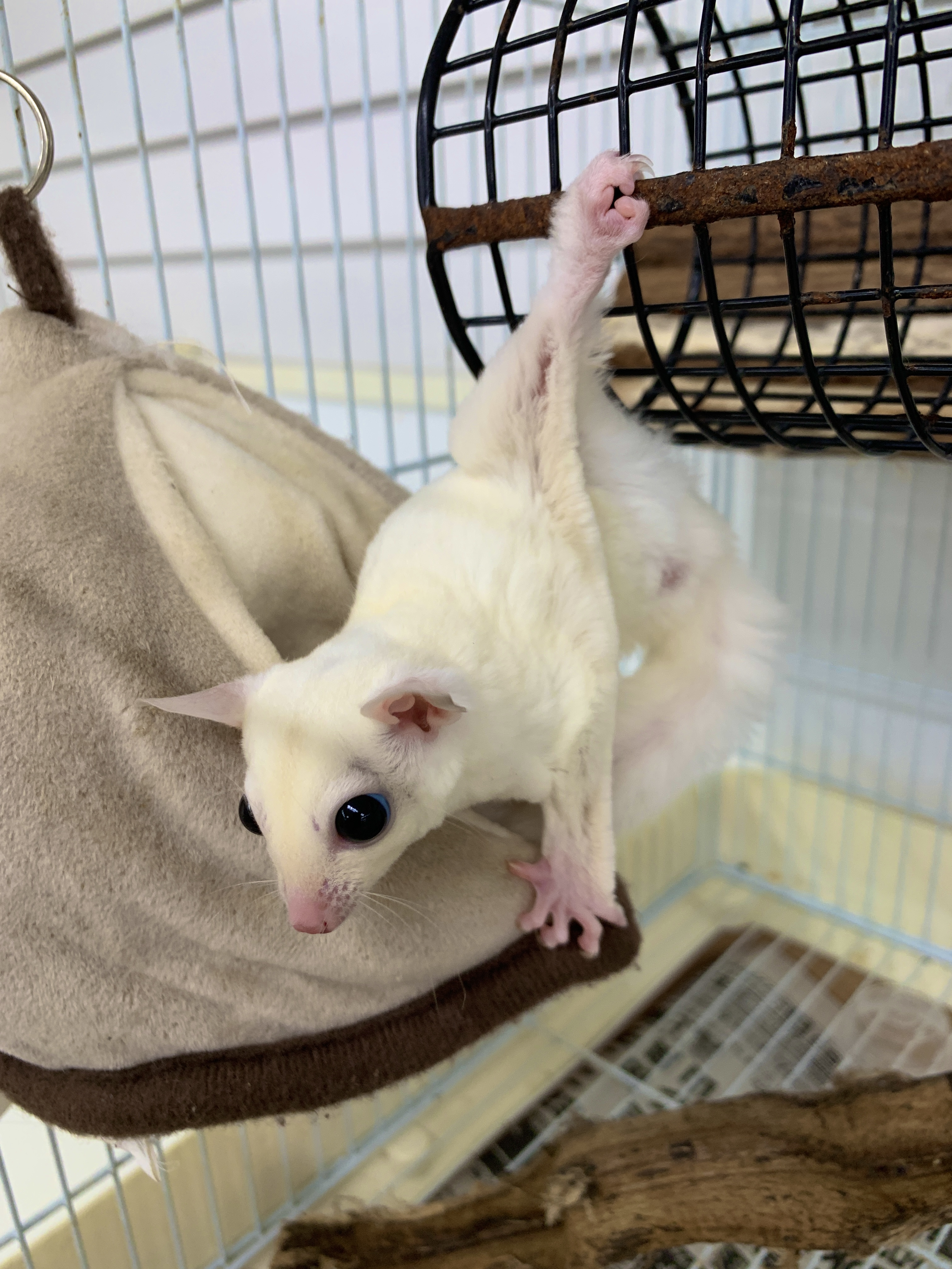 フクロモモンガは小さな体のため、温度管理と安心できる寝床(ポーチ)の用意がとても大切です。