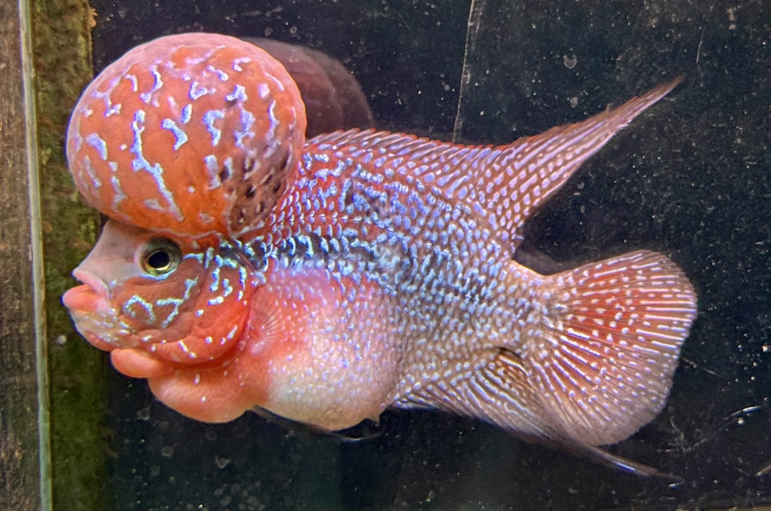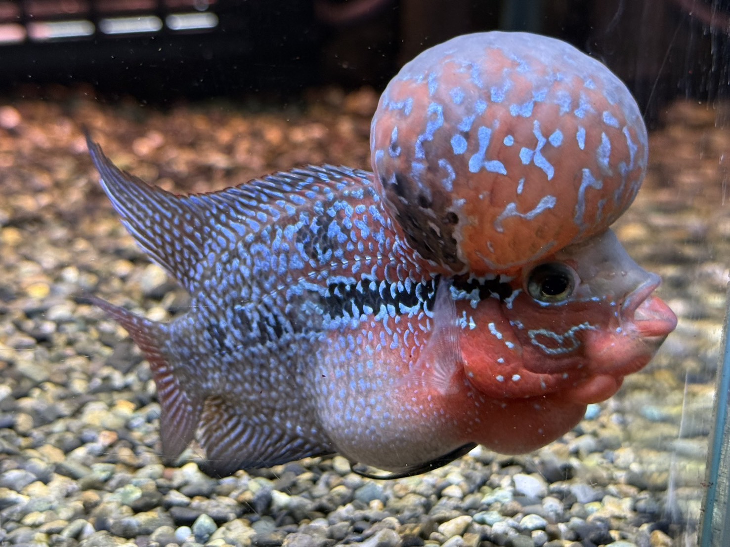 圧倒的な存在感を放つ、スーパービッグヘッド個体のフラワーホーンです。