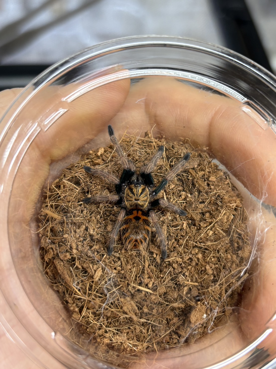 高さのあるケースで隠れ家を入れておくとそれに合わせて巣を張るので、自然に近い環境も楽しめます。