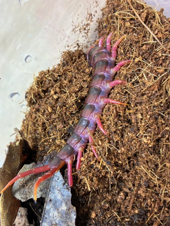 深みのある紫色の体色が特徴的なパープルジャイアントセンチピードです。