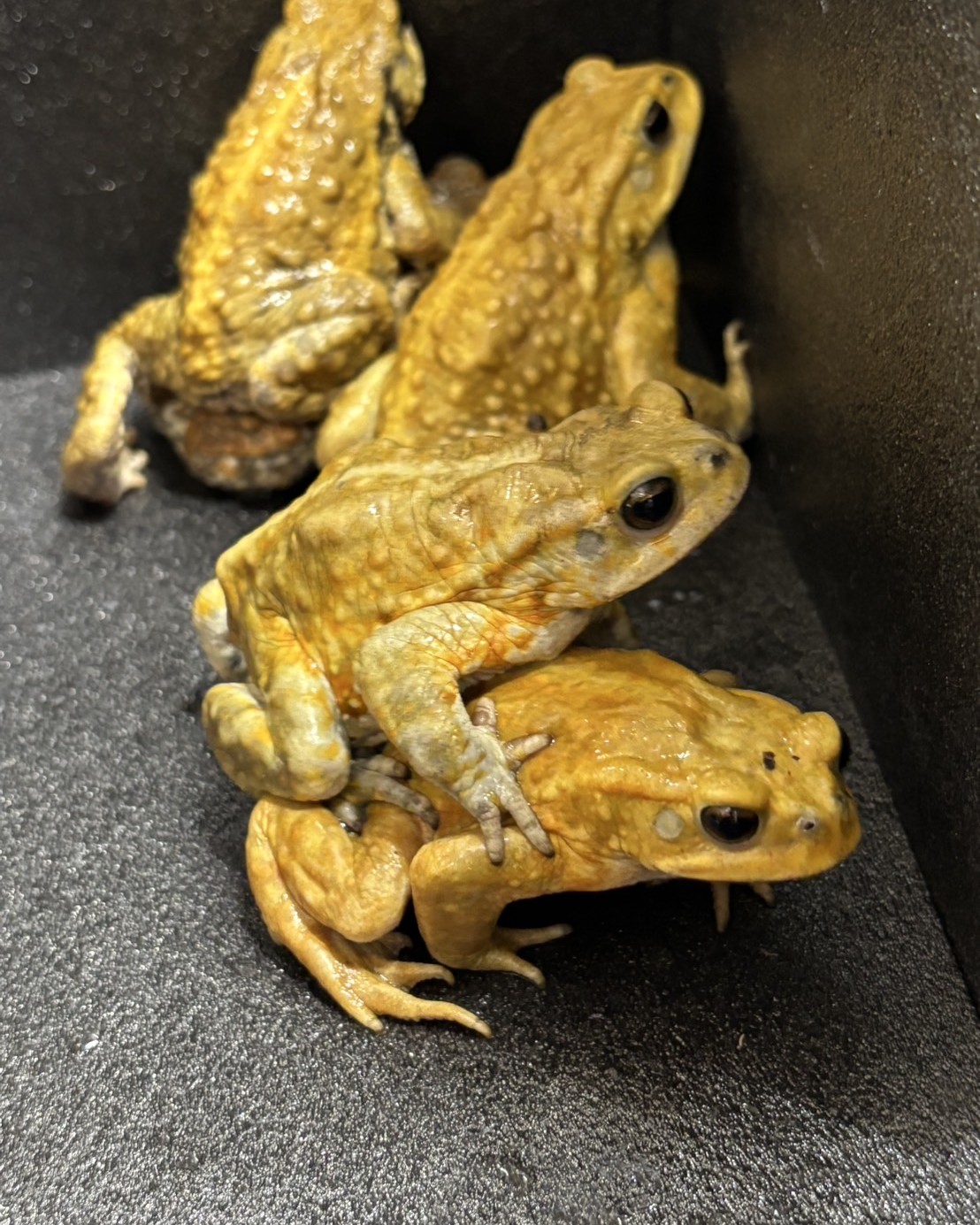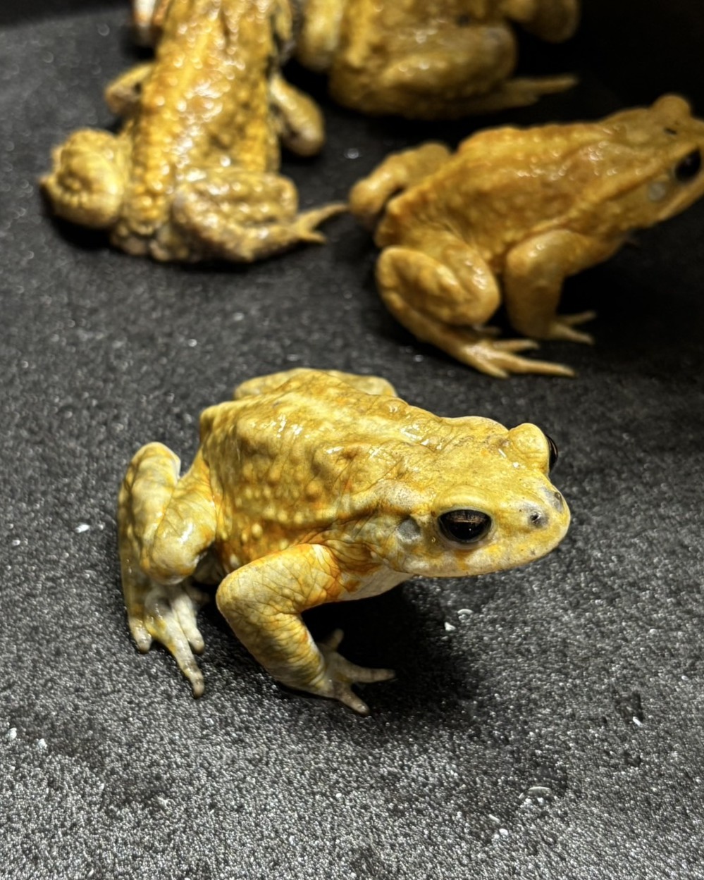 特徴的なずっしりとした体型と、深いゴールドカラーが魅力のミヤコヒキガエル。