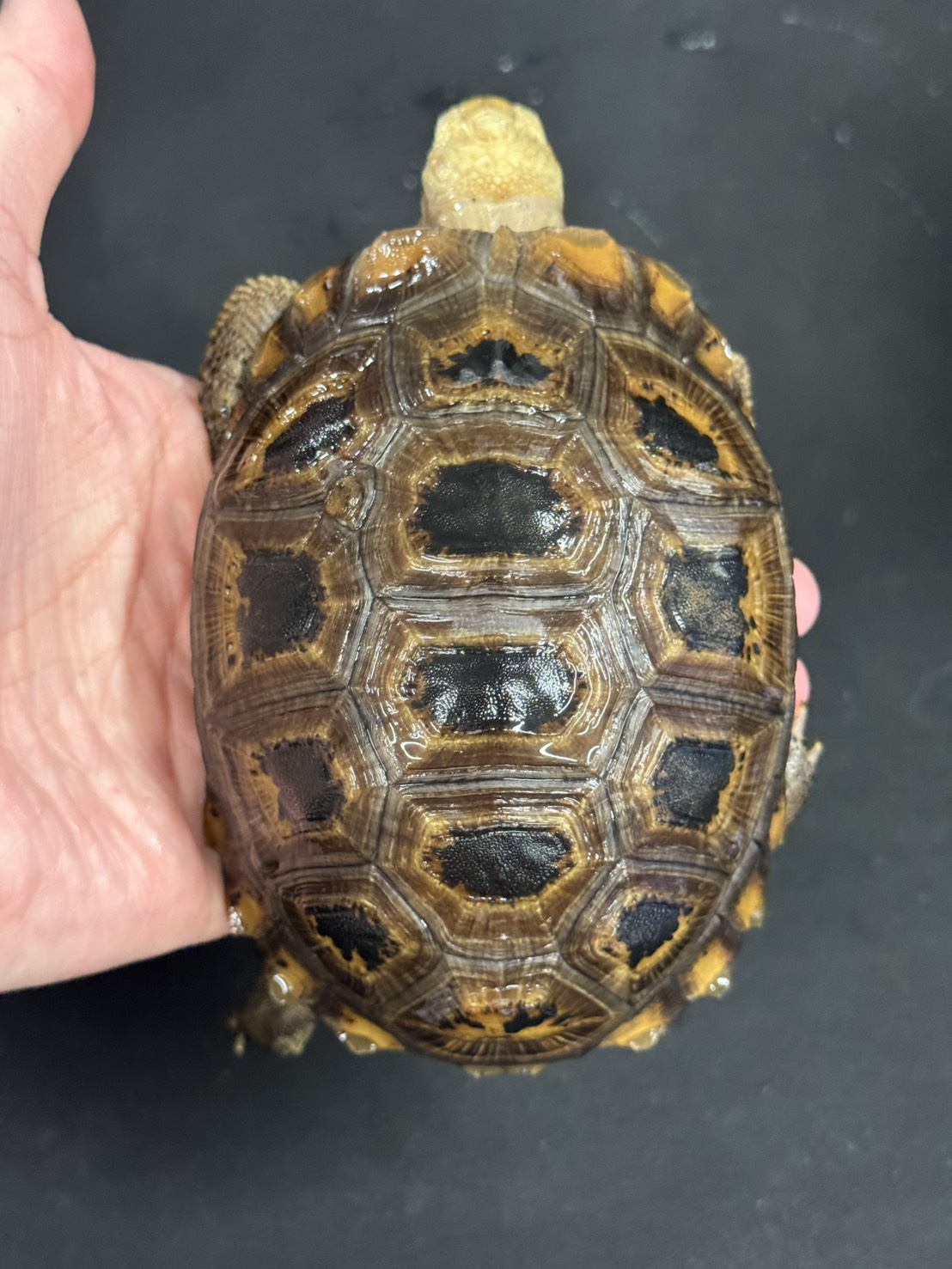 細長い甲羅形状と素朴な体色が特徴で、自然味のある佇まいを楽しめるタイプです。地表をゆっくり歩き回りながら採食する姿が印象的で、落ち着いた行動パターンから日常の観察もしやすい点が魅力です。環境に慣れると行動が安定し、長期飼育に向いた存在として親しまれています。