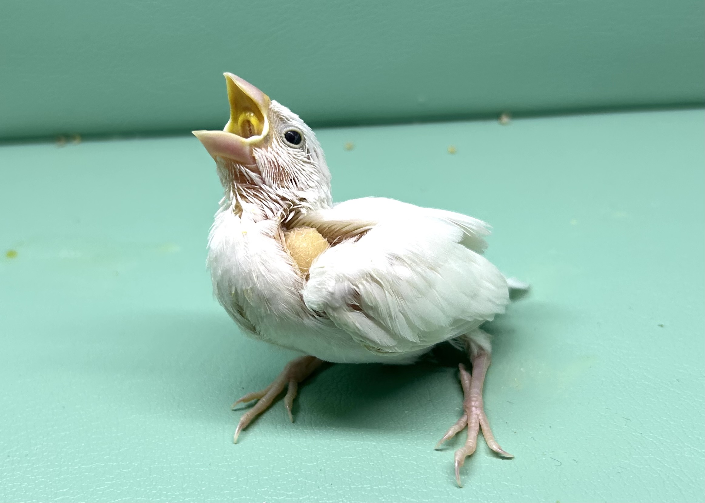 真っ白な羽に小さな命のぬくもり✨これからの成長が楽しみな白文鳥の雛。