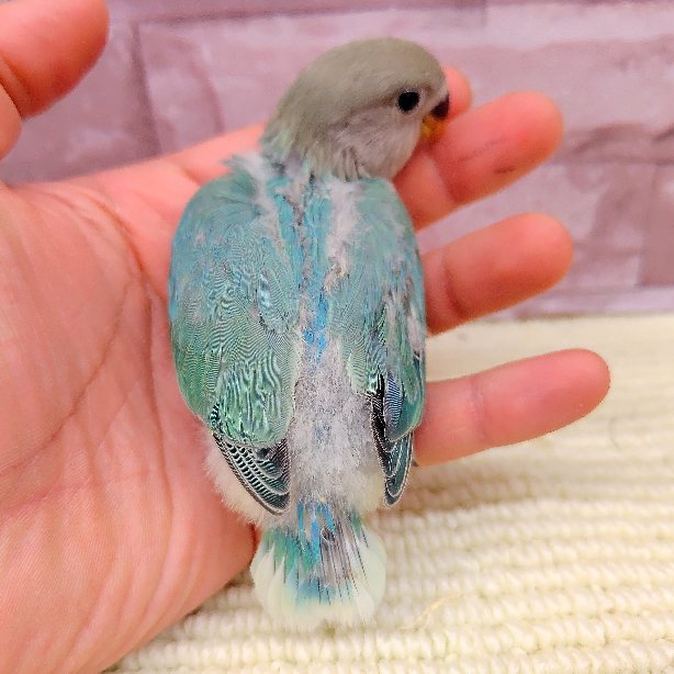 まだ羽が揃いきっていない、ほわほわの綿毛が残る背中。