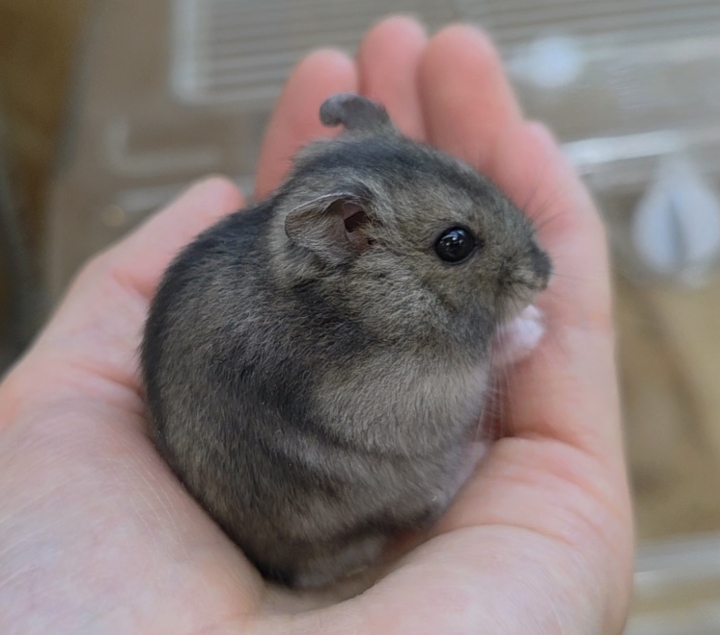 やわらかなグレーの毛並みと、まんまるなお顔が愛らしいジャンガリアンハムスター(ノーマル)です🐾
