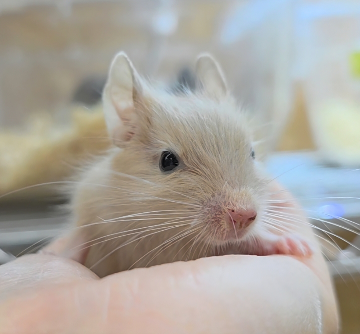 やさしいクリームイエローの被毛が魅力のデグー(イエロー)です🐾
