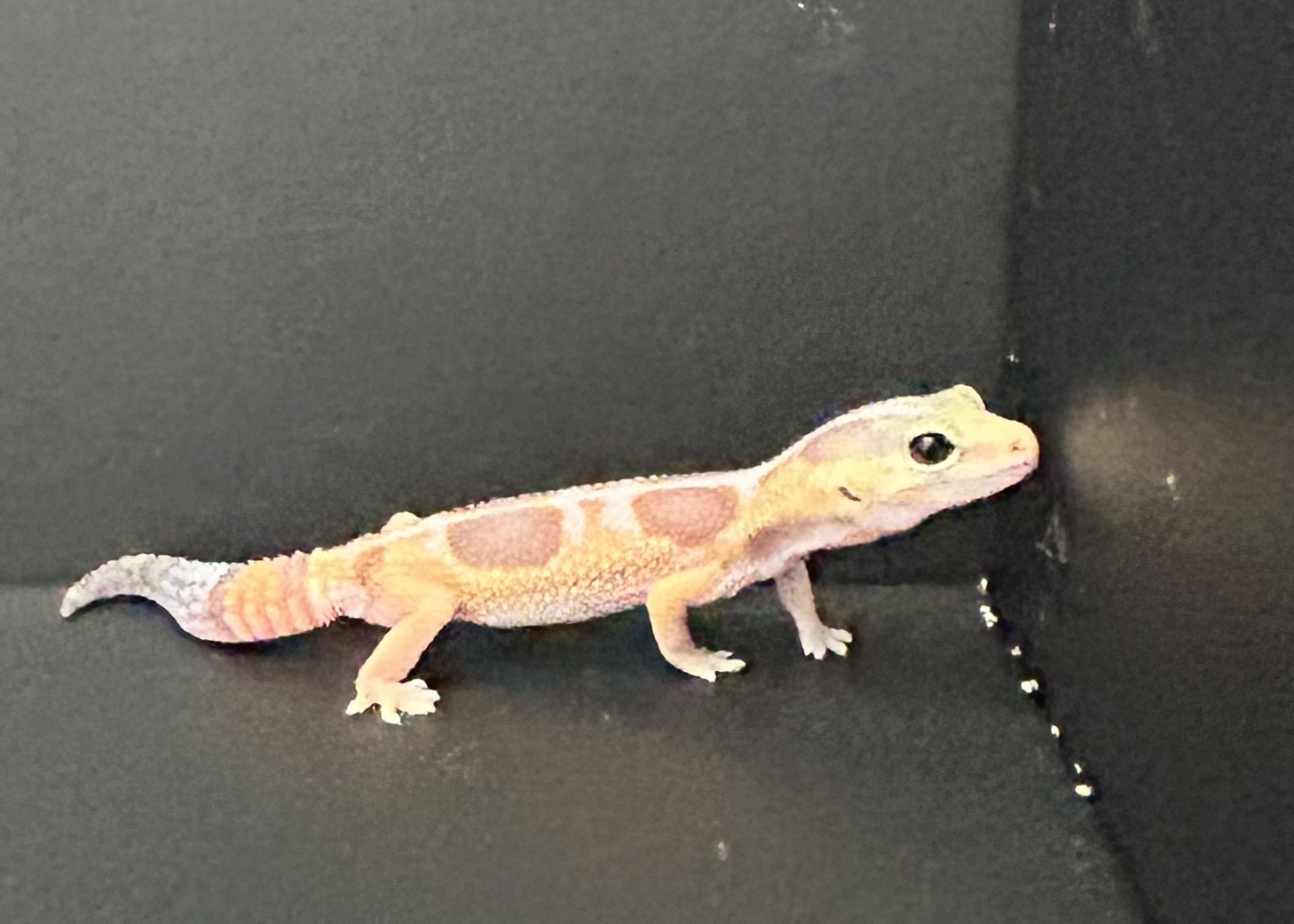 ニシアフリカトカゲモドキ ホワイトアメルは、淡いベースカラーにアメル特有のやさしい色味が重なった、透明感あふれる人気モルフです。