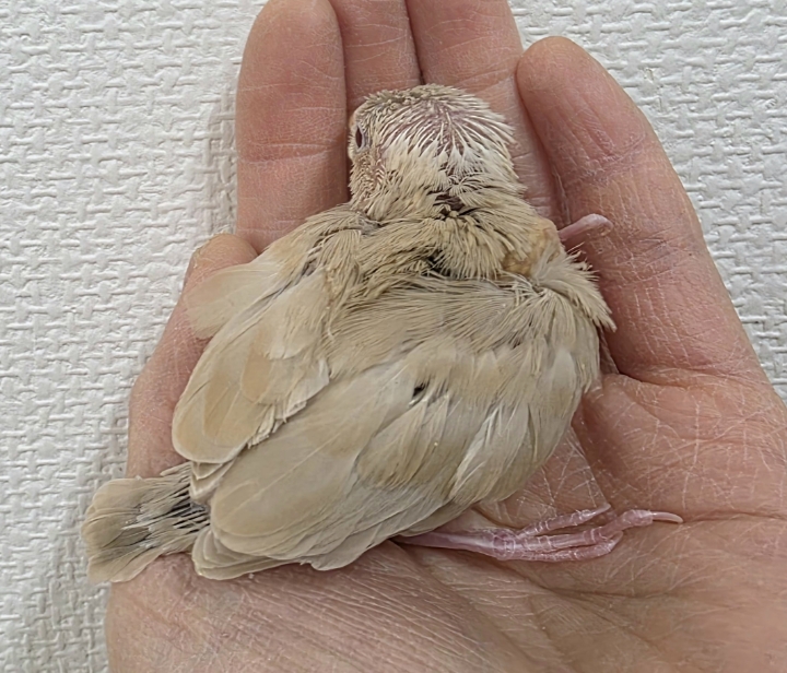 まだ幼い雛のため、現在は挿し餌1日3回で育てている成長途中の子。