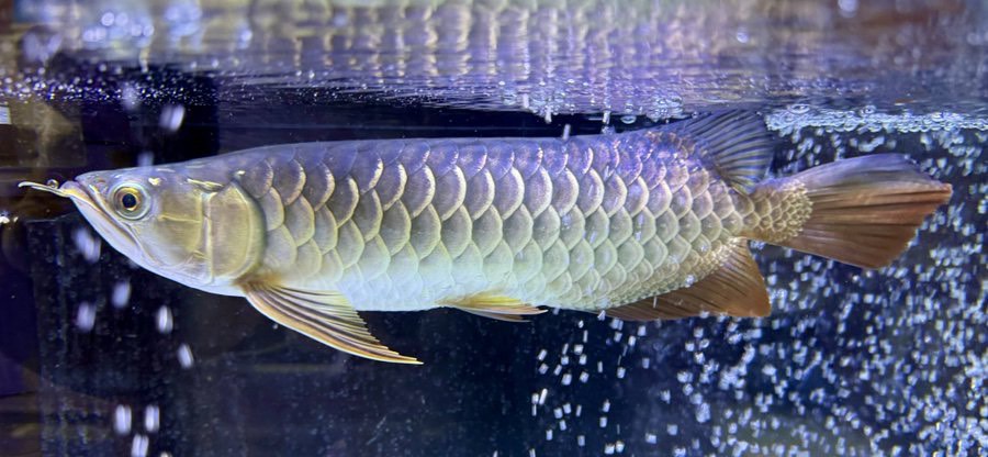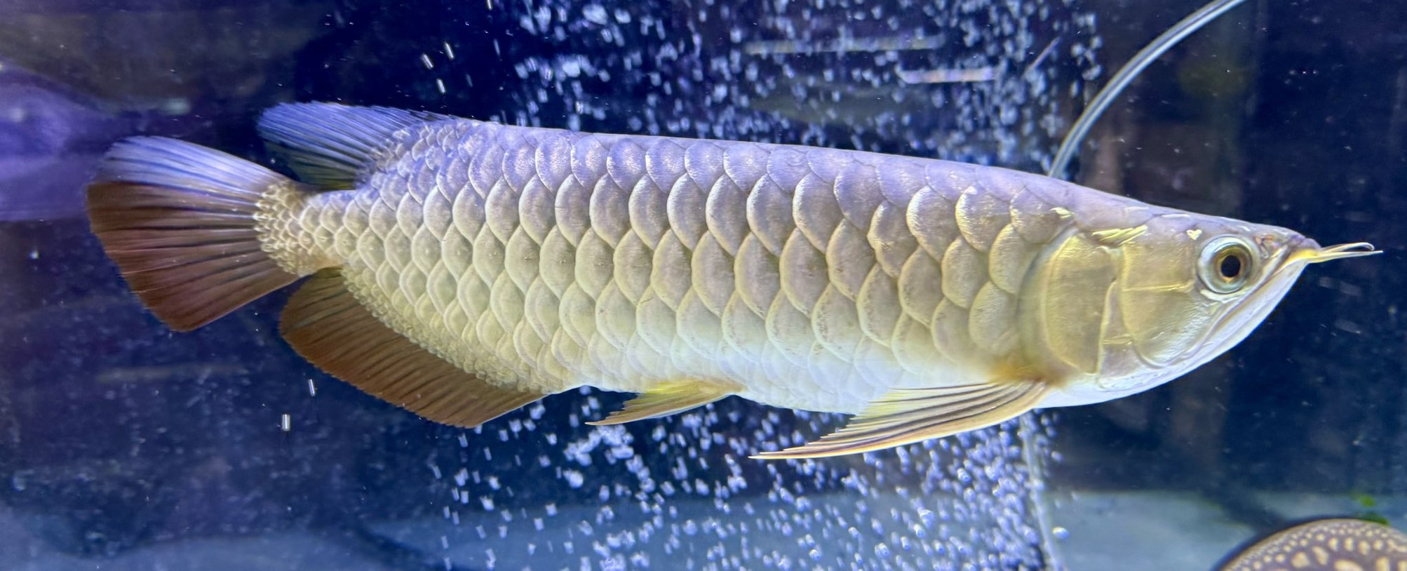アジアアロワナの中でも特に高い人気と価値を誇る最高峰グレード。背中まで金色が乗り上がる“過背”の名の通り、成長とともに全身が重厚なゴールドに包まれていく姿はまさに圧巻です。大きく整った鱗の一枚一枚が強い光沢を放ち、遊泳するたびに高級感あふれる存在感を演出します。