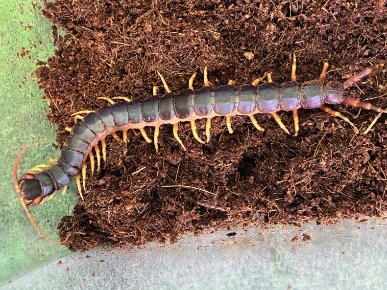 南米原産の大型ムカデ、Scolopendra viridicornisのブラウンタイプです。力強い体型と迫力のあるサイズが魅力で、コレクション性の高い人気種です。現在の体長は約20cmと見応えのあるサイズで、観察個体としても存在感があります。