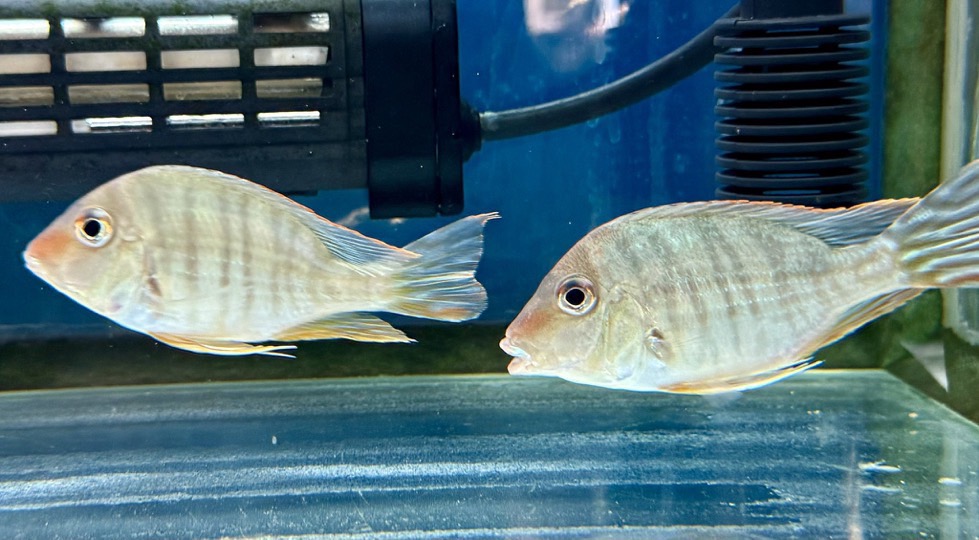 丸みを帯びた独特の体型と、ほんのり赤みを帯びる頭部の発色が魅力の個体です。通常個体よりも愛嬌のあるシルエットで観賞価値が高く、底砂を口に含んでエサを探す“サンドフィルター行動”も楽しめます。