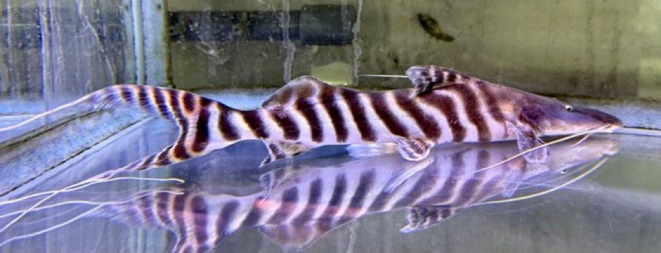 白と黒の鮮明なゼブラ模様が非常に美しい大型ナマズ。成長とともに体高が出て迫力が増し、遊泳力も強く大型水槽の主役にふさわしい存在感を放ちます。人工飼料にも慣れやすく、しっかり管理すれば長期飼育が楽しめる人気種です。