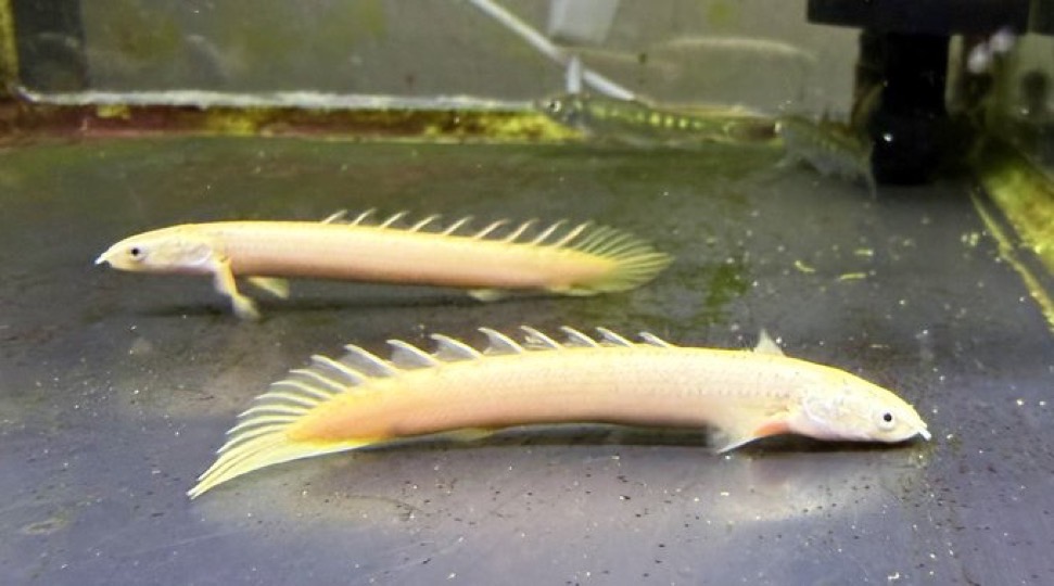 ポリプテルスの中でも人気・知名度ともに高いセネガルスのプラチナ個体。全身に広がる純白〜淡いクリーム色の体色と、ほんのりと色付くヒレのコントラストが非常に上品で、ライトの下では幻想的な存在感を放ちます。比較的小型で扱いやすく、古代魚入門種としてもおすすめ。ゆったりと泳ぐ姿や底を這うような動きも魅力的で、単独飼育はもちろん大型魚混泳のワンポイントとしても映える個体です。