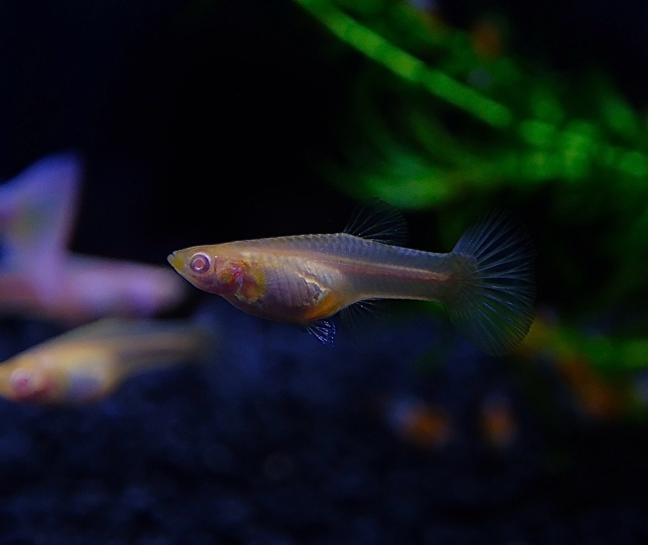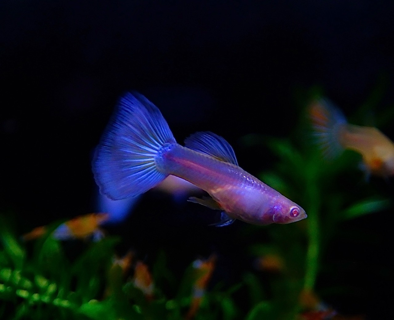 RREAの赤い瞳と透けるようなピンクボディに、モスコー系特有の大きく広がる鰭が重なる美しい系統。