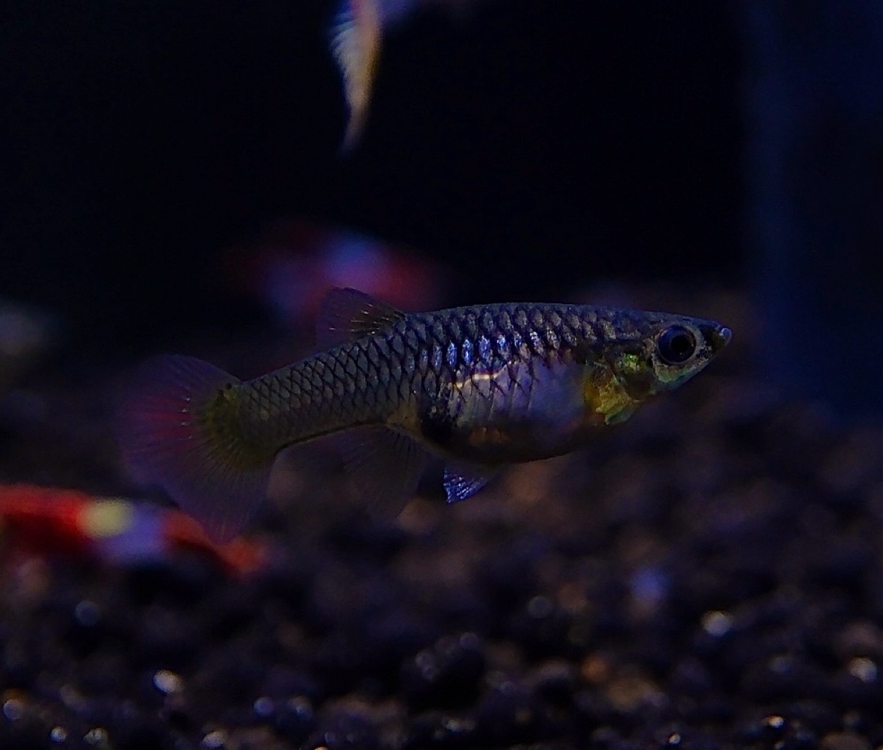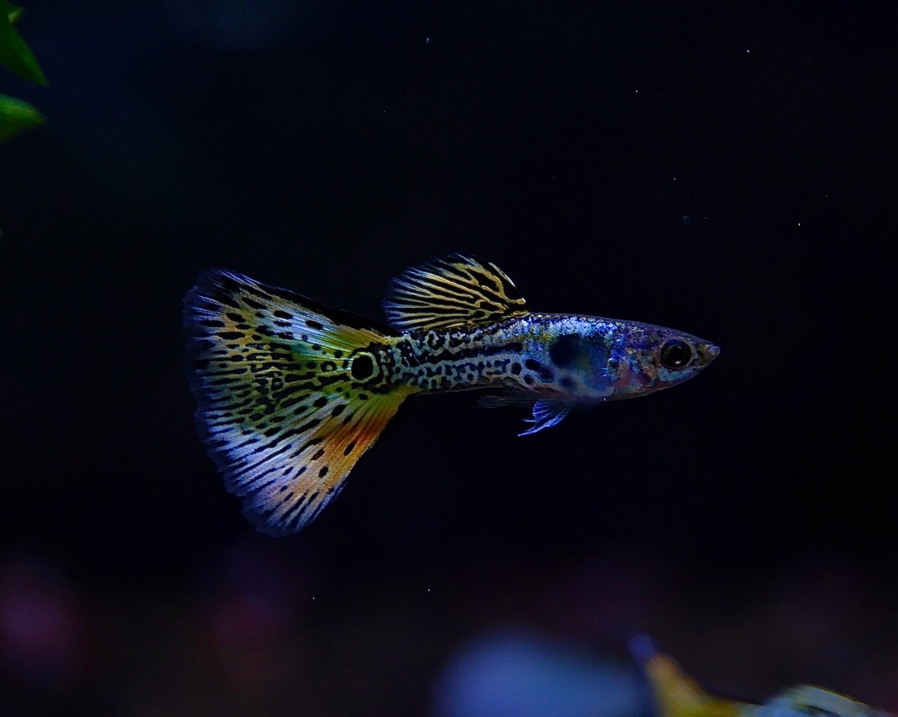 尾鰭一面に広がるスポットと網目状の模様が特徴的。